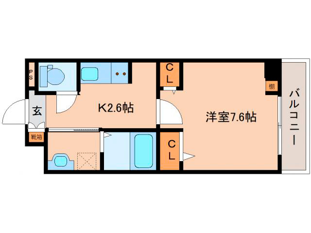 | 間取/面積 | 1K (K2.6/洋室7.6) / 27.02m2 | ||