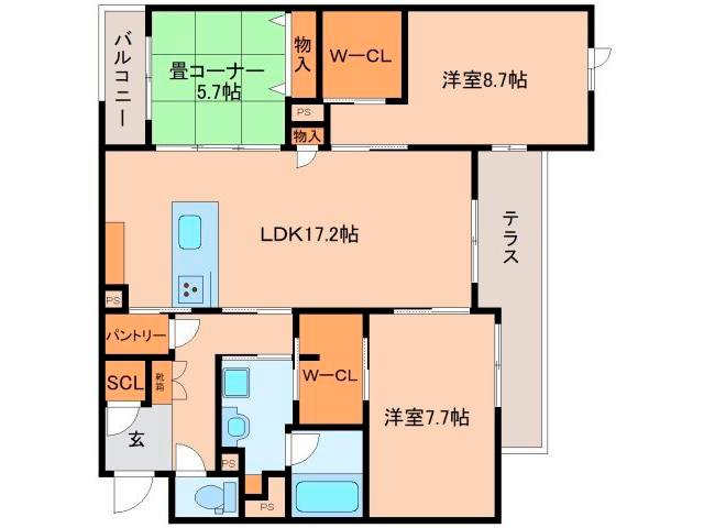| 間取/面積 | 3LDK (LDK17.2/洋室8.7/洋室7.7/和室5.7) / 95.90m2 | ||