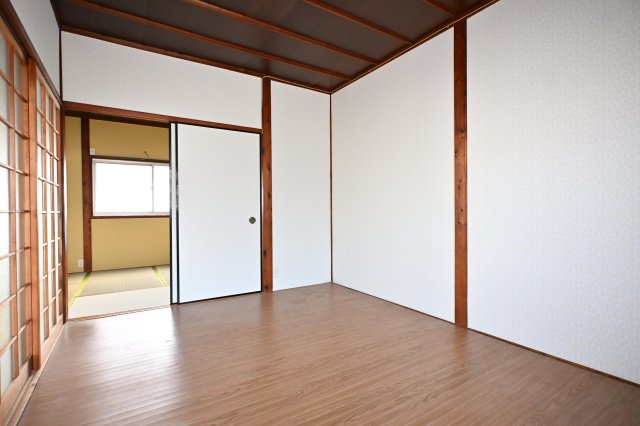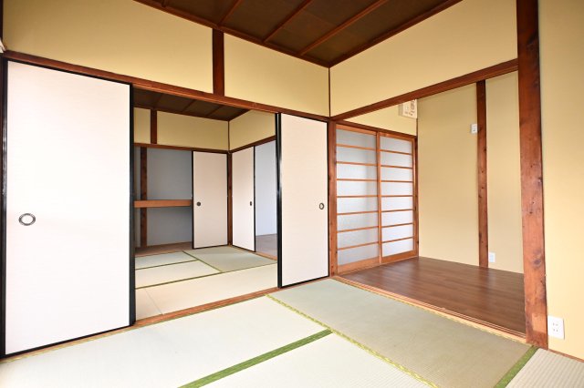 ペット飼育可の平屋借家☆彡3Kの間取りは、続き和室で襖を開ければ広々使用することも可能ですし、仕切って寝室などにも出来るので使い勝手が良いですね♪一間半の押入れは収納力◎室内綺麗になっており、デザインクロスが可愛らしいです☆彡テラスは目隠しがあるので周りの目も気にせず使用できます♪すぐ近くにコンビニがあるので、急な買い物にも便利ですし、24号線まで広い道路なのでお車をお持ちの方にも便利な立地です♪