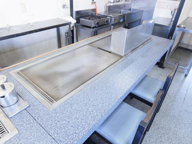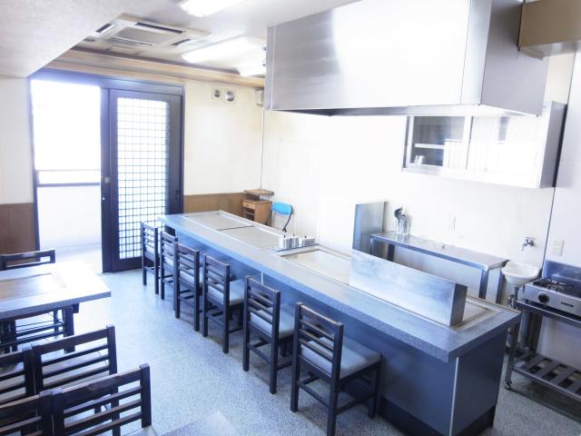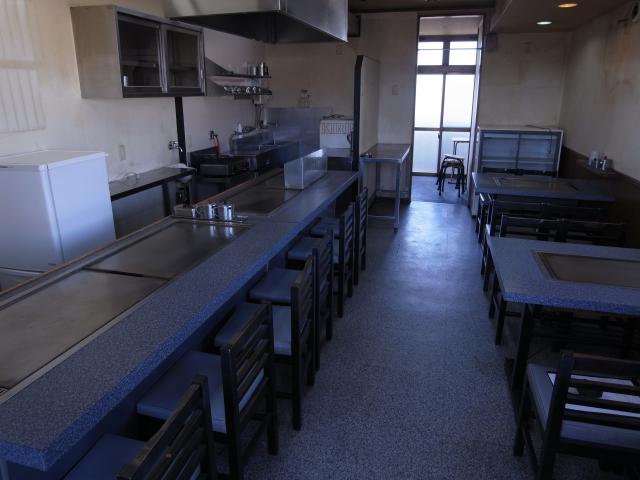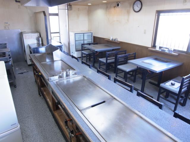 居抜き物件です。お好み焼き屋さんだったので鉄板を使う業種の方、大歓迎。すぐに始めれますよ。他にもカウンター6席、テーブル8席、冷蔵庫などなど、ご自由にお使い下さい。お客様用の駐車場も確保できます。ぜひ、ご覧下さい。