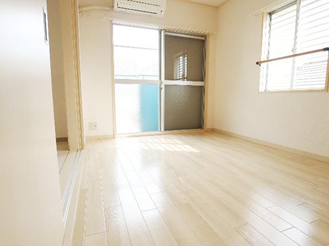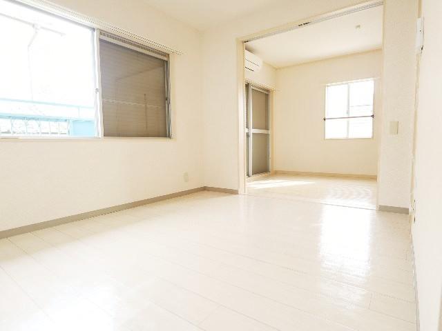 南向きで日当り良好のお部屋です☆エアコン1基付いているのは初期費用が助かるポイントですね。オール洋室の2DKに改装済みで広々使いたい単身様から新婚様にもご利用いただける間取りです☆人気の独立洗面台。24時間365日入居安心サポート付きで安心です!駐車場も敷地内に確保可能です。角部屋で窓も多く風通し良く快適ですよ~☆